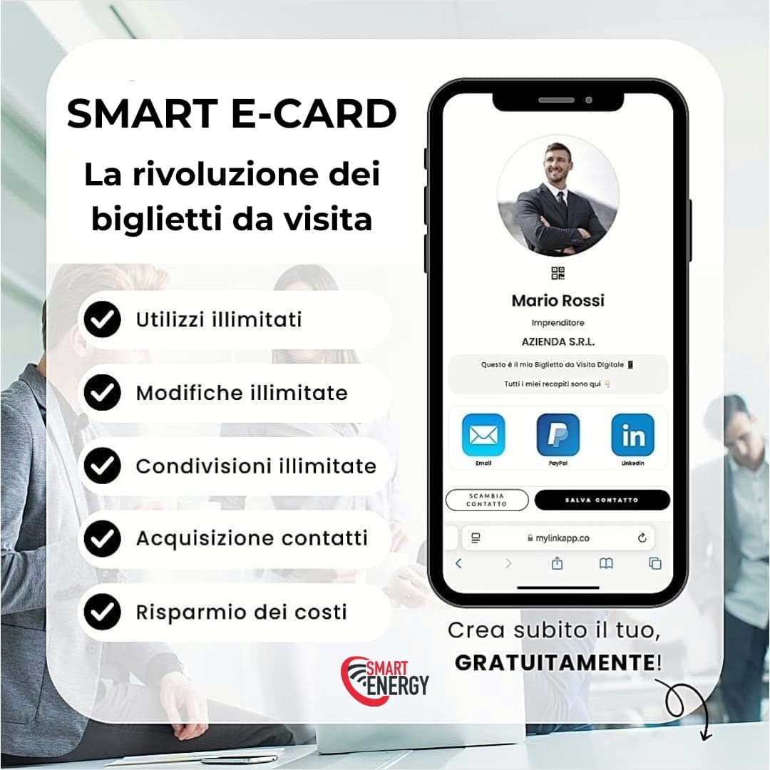 Smart E-Card è uno strumento avanzato in grado di condividere le informazioni di contatto, i canali social e gli altri dati aziendali in modo intelligente, immediato e rispettoso verso l'ambiente.
